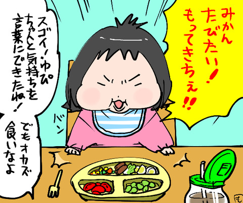 どもづこー!今日のお昼ご飯のとき、娘がいきなりしゃべりだしたんですよ!単語だけじゃない、ちゃんと「どうしたいから、こうして欲しい」 という文章を。びっくりした。いつのまにこんなちゃんと会話できるようになったんだろう。 でも、ご飯チラ見しただけでみかん要求し ...