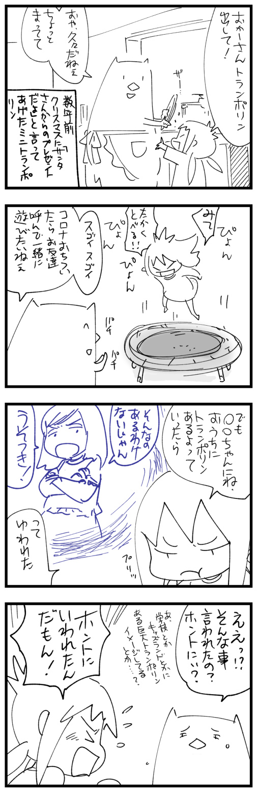 そんなミニトランポリンを巡って、学校でむすめがお友達とちょっとした言い合いになったようです。