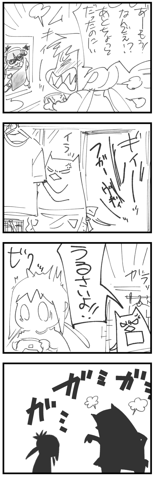 むすめを叱ったら叱られた 2023年03月27日 こんにちは。春休み突入ですね。宿題も無いのでむすめはすっかりゲーム三昧です。休みなんだしやるなとは言わないけど、遊び方にちょっと一言モノ申したい。だってホントうっさいんですよ、金切り声で絶叫するし悔しがって泣き出すわ物にあたるわ…。よその小学生のお子さん ... 続きを読む こんにちは。春休み突入ですね。宿題も無いのでむすめはすっかりゲーム三昧です。休みなんだしやるなとは言わないけど、遊び方にちょっと一言モノ申したい。だってホントうっさいんですよ、金切り声で絶叫するし悔しがって泣き出すわ物にあたるわ…。よその小学生のお子さんとかもゲームする時こんななのかな?面白いと感じない状態なら一旦離れてクールダウンすりゃいいのに。あとゲーム実況動画の影響なのかゲームしながらずっとしゃべり続けてるのすごい気になるわー。人気ブログランキングポチッとしていただけたら歓喜。登録すると更新時通知がいくそうです。twitterにて娘のその日印象に残った言葉を1コマ漫画にしてほぼ日(あんまできてないけど…)更新しとります。よかったら(^◇^) タグ :#育児漫画#8歳#春休み