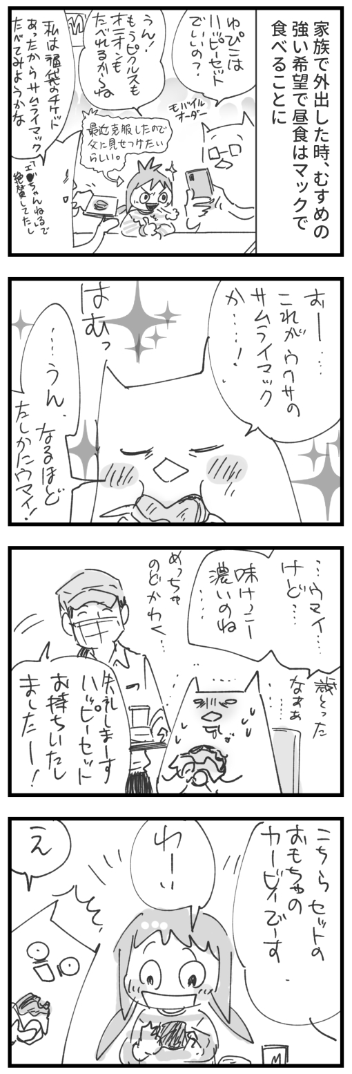 発表時「欲しいな~」と思いつつも日々の生活に忙殺されてすっかり忘れてしまっていたんですが、たまたま家族でお出かけしてむすめが「お昼はハッピーセットが食べたい!」と言うのでマックに行ったらちょうど発売初日という幸運…!!