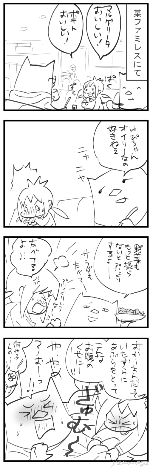 ぷっくりが気になるお年頃 2024年11月28日 こんにちは。先日某ファミレスに家族で食事に行ったんですが、その時のお話。むすめはピザとフライドポテトが大好き。おいしそうに食べるむすめを微笑ましく思いつつも、野菜もたくさん摂ってほしい親心からついつい余計な事いってしまいます…チクリと言ったらめちゃくちゃ ... 続きを読む こんにちは。先日某ファミレスに家族で食事に行ったんですが、その時のお話。むすめはピザとフライドポテトが大好き。おいしそうに食べるむすめを微笑ましく思いつつも、野菜もたくさん摂ってほしい親心からついつい余計な事いってしまいます…チクリと言ったらめちゃくちゃやり返されました。傷つきやすいお年頃、言葉に気を付けないと叱られますね。ライブドアアプリでの読者登録していただけますと幸い。(私のわかりにくい説明にもかかわらず登録してくださってる皆様、本当にありがとうございます…!)ブログ内のQRコードからも登録できるみたいです。人気ブログランキングポチッとしていただけたら歓喜。X(旧twitter)にて娘のその日印象に残った言葉を1コマ漫画にしてほぼ日(あんまできてないけど…)更新しとります。よかったら(^◇^) タグ :#育児漫画