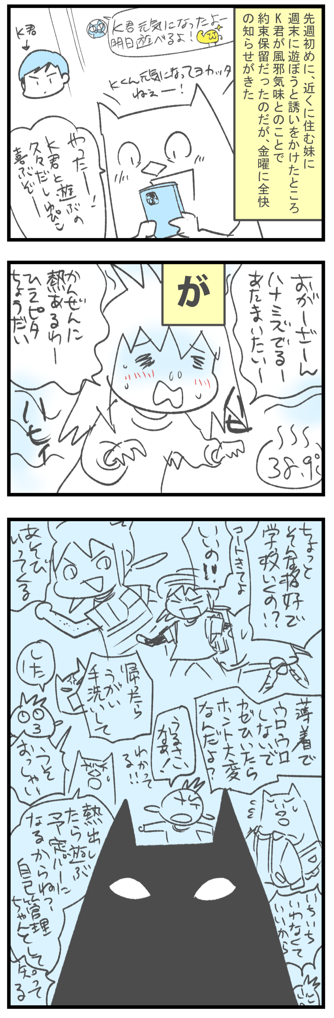 子どもが熱だすのは仕方ないことだってわかってはいるんですけど、むすめのあまりにも危機感がなさすぎる生活ぶりに小言のひとつでも言ってやりたくなるのもまた事実…。