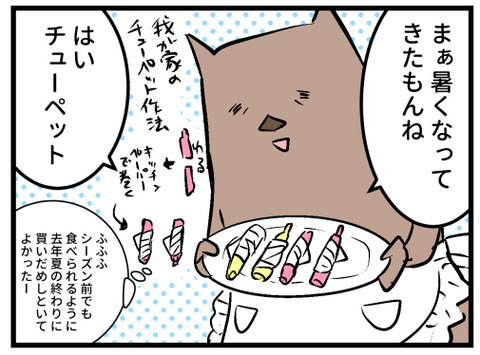 おはようございます。ようやく春が来たと思ったら昼間は夏日かってくらいの暑さになってみたり、季節の移り変わりを感じる今日この頃。そして暑くなってきたら我が家の冷凍庫に常備される、むすめの定番おやつ…チューペットの出番!いつも学校から帰宅するなり「おかーさん ...