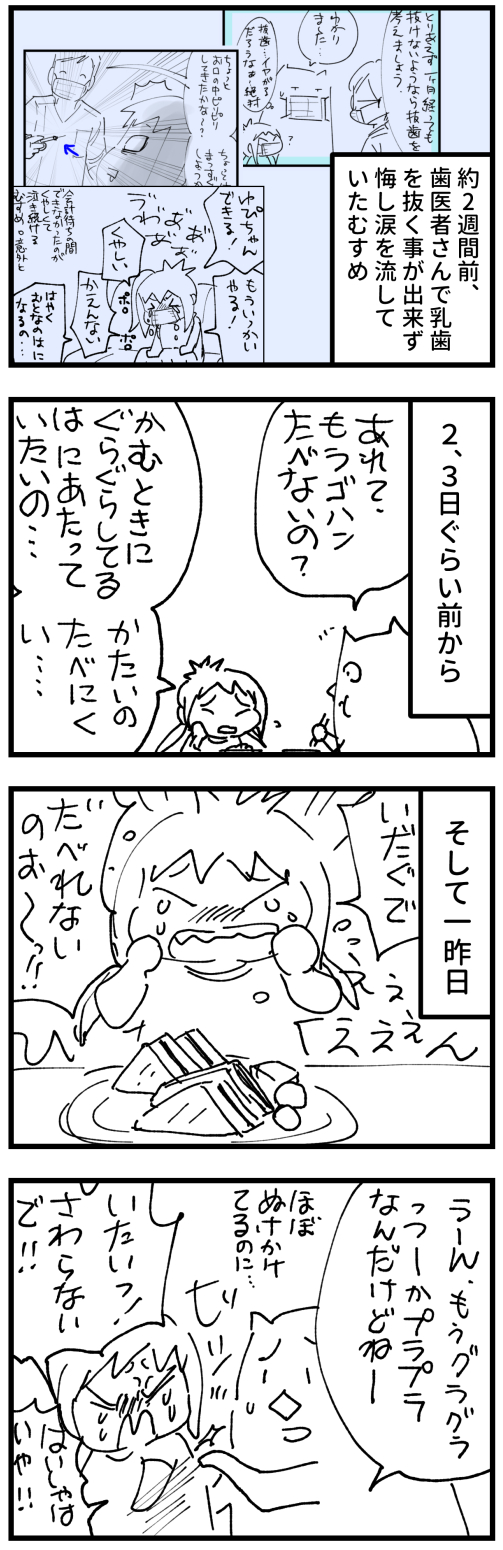 それから約二週間たったある日、むすめが例の乳歯をまた気にしだしまして。