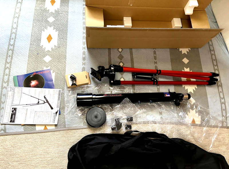 家族でじっくり観望するつもりだったので、おにぎりやおかずとかを買い込んでベランダに望遠鏡、首には双眼鏡ぶら下げつつ待機。