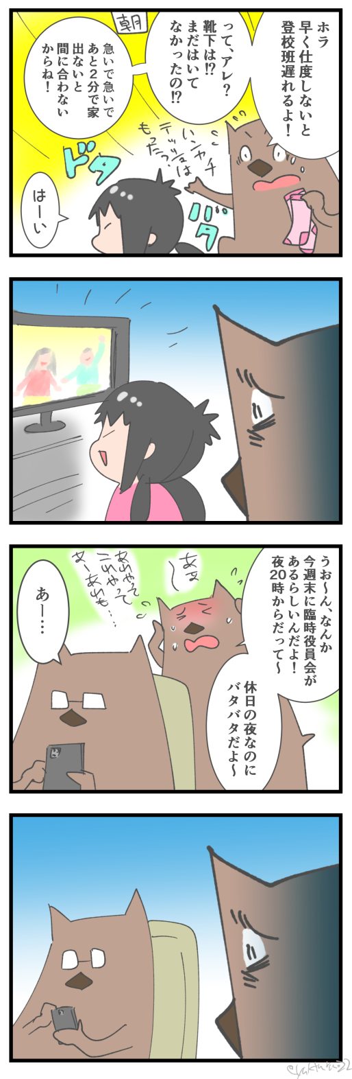 twitterにて娘のその日印象に残った言葉を1コマ漫画にしてほぼ日(あんまできてないけど…)更新しとります。よかったら(^◇^)