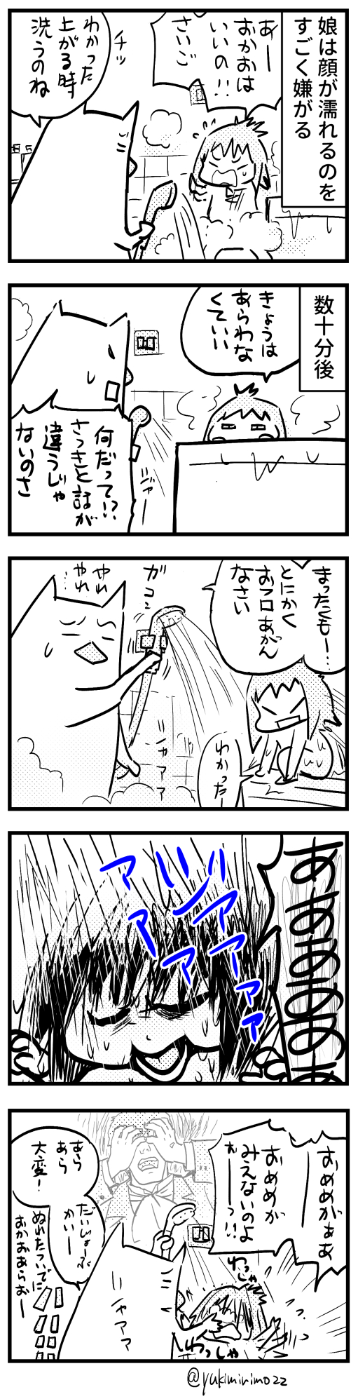 「わたしもう自分で洗えるからひとりで入りたい!」とかいうくせに、ほっとくといつまで経っても入らないから結局こうなるんじゃないのさ。
